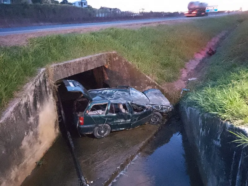 O Corpo de Bombeiros foi acionado na tarde deste domingo, dia 9, para auxiliar em um acidente de trânsito em que o motorista ficou preso nas ferragens do carro. A vítima, um homem de 38 anos, perdeu o controle da direção e o carro saiu da pista, colidindo em uma galeria de drenagem na margem da BR-101, em Pescaria Brava.