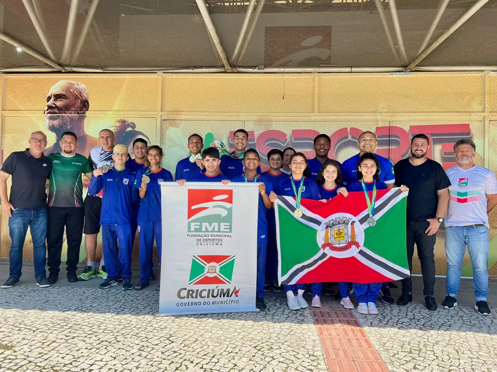 Uma recepção calorosa, em frente ao Ginásio Municipal de Esportes Irmão Walmir Antônio Orsi, marcou a chegada dos atletas do programa social +Esporte +Futuro, da Fundação Municipal de Esportes (FME) de Criciúma e da Associação Criciúma de Karatê. Os 13 atletas e o técnico Edmundo Cândido disputaram, em São Bernardo do Campo (SP), o Campeonato Brasileiro de Karatê. Ao todo, eles trouxeram 10 medalhas para Criciúma, sendo cinco de ouro, três de prata e duas de bronze. Uma delas foi conquistada pelo paratleta Andrius Vicente, que garantiu o 2º lugar no Kata Individual.