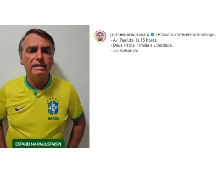 Em um vídeo publicado nas redes sociais nesta segunda-feira, dia 12, o ex-presidente Jair Bolsonaro convocou um ato para o próximo dia 25 na Avenida Paulista, em São Paulo, com o argumento de que quer usar a ocasião para se defender, em meio às investigações da Polícia Federal (PF). O assessor e advogado do ex-presidente, Fabio Wajngarten, confirmou a realização do evento.