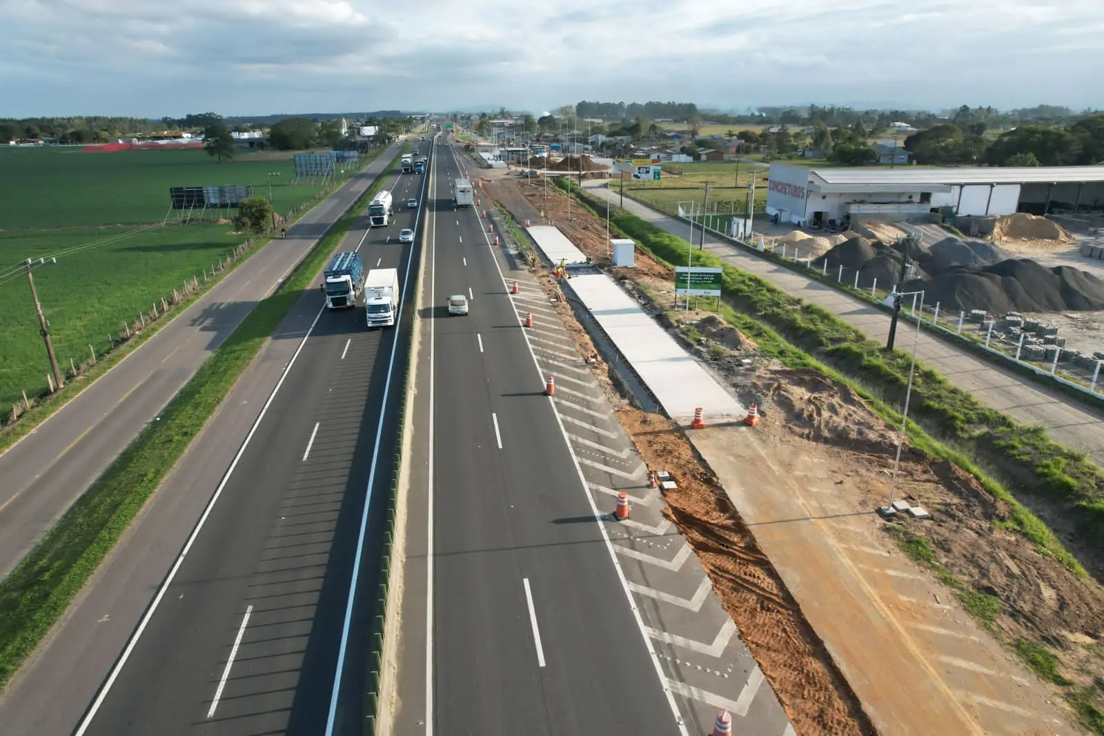 Seguem em evolução as obras da nova balança de Araranguá, na região do km 417 da pista Sul da BR-101 Sul/SC. No local, as equipes da CCR ViaCosteira promovem a readequação da estrutura conforme os parâmetros exigidos pelo contrato de concessão da rodovia junto ao Governo Federal.
