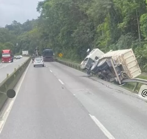 Segundo a PRF, um guincho da concessionária da rodovia já está no local, realizando o destombamento do caminhão.