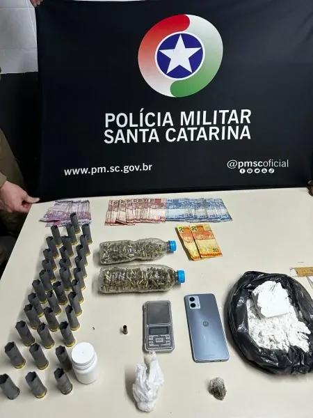 Na residência, de acordo com a PM, além das drogas, também foram encontrados cartuchos deflagrados de munição de calibre .12, .22 e .32, R$ 210 em dinheiro e uma balança de precisão. O jovem foi conduzido à Delegacia de Polícia Civil, junto do material apreendido.