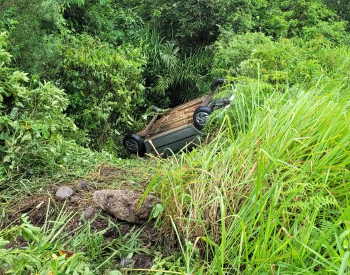 Um veículo Ford Fiesta seguia pela rodovia SC-390, em Orleans, na manhã deste domingo, dia 8, quando o condutor perdeu controle, saindo da pista e em seguida capotou. O veículo acabou caindo às margens da rodovia.
