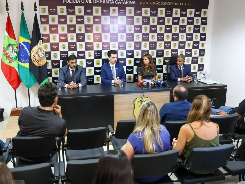 Para prestar os esclarecimentos e responder às demandas da imprensa, também estiveram na coletiva o diretor de Polícia da Grande Florianópolis, delegado Pedro Henrique de Paula e Silva Mendes, e o diretor do Gabinete da Delegacia-Geral, delegado Marcelo Nogueira.