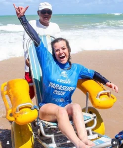 Superação, fé e inclusão marcaram a trajetória da atleta Maryele Cardoso, que fez história ao conquistar o título brasileiro de surf adaptado no Campeonato Brasileiro de Surf Adaptado (Parasurf),