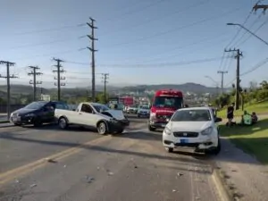 Uma colisão entre um Fiat Siena e uma Fiat Strada deixou o trânsito lento na SC-108, no bairro Corridas, em Orleans, no início da noite