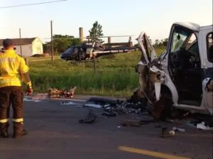 Um acidente grave entre uma van e um caminhão deixou seis pessoas feridas na tarde desta quinta-feira (27) em Morro da Fumaça. A colisão ocorreu
