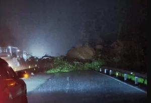 Uma queda de barreira deixou o trânsito lento na Serra do Rio do Rastro, em Lauro Müller, no início da noite desta sexta-feira, dia 12.