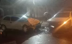 Acidente aconteceu na noite desse sábado, dia 13 O motorista de um carro sofreu uma fratura no nariz em uma colisão frontal na noite desse