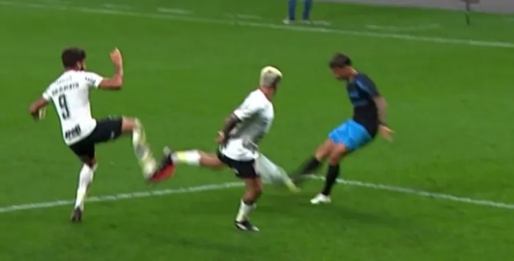 Assistente do VAR, Michael Patrick Costa ainda argumenta: “Você não acha que está muito aberto?”. Emerson, entretanto, mantém a decisão de campo e pede para o escanteio ser cobrado. “Ele não está com a intenção de bloquear. Ele está com a intenção de disputar a bola”. Após o empate em 4 a 4, o técnico do Tricolor, Renato Gaúcho, ironizou a decisão da arbitragem. Já o presidente Alberto Guerra prometeu fazer uma reclamação formal à CBF (Confederação Brasileira de Futebol).