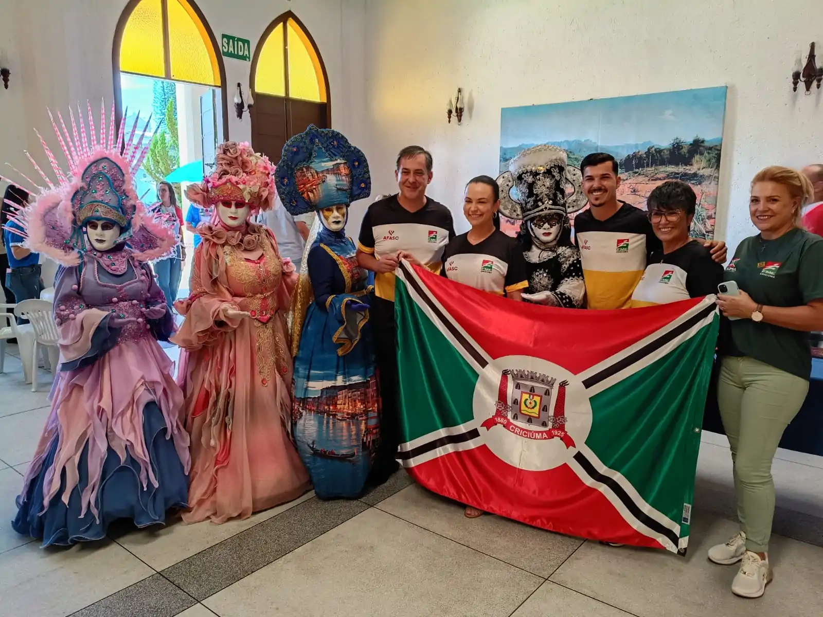 A solenidade de abertura aconteceu no Palazzo Delle Acque, que recebeu as delegações de todos os municípios participantes. O prefeito Vagner Espindola, a primeira-dama e presidente de honra da Associação Feminina de Assistência Social de Criciúma (Afasc), Gisele Bolan, e a presidente da Fundação Municipal de Esportes (FME), Robinalva Ferreira, prestigiaram o ato.