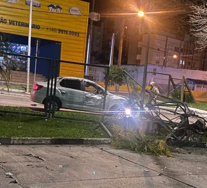 Um motorista, de 26 anos, perdeu o controle do automóvel Renault Logan, e acabou capotando e colidindo contra a grade do Terminal Central, no Centro de Criciúma. O motorista estava trafegando na Avenida Centenário no sentido Próspera, se perdendo na curva. A Polícia Militar (PM) foi acionada, às 5h28min, desta quinta-feira, dia 13, e se deslocou para o local.