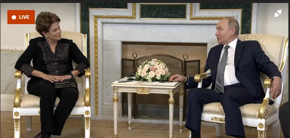 Nessa quarta-feira (26), Dilma Rousseff, ex-presidente da República e atual presidente do banco dos Brics, se reuniu com o presidente da Rússia, Vladmir Putin, em São Petesburgo, na Rússia.