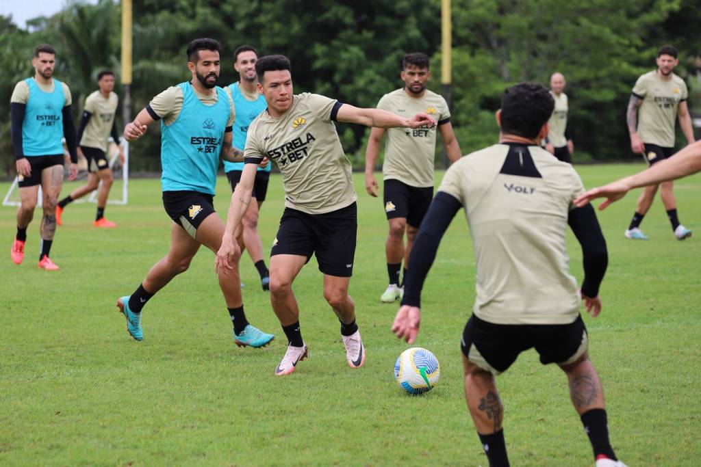 No treinamento, o comandante carvoeiro organizou o sistema tático da equipe que enfrenta o Internacional. Na parte final, o técnico Cláudio Tencati fez as jogadas de bolas paradas e os atletas treinaram as finalizações.