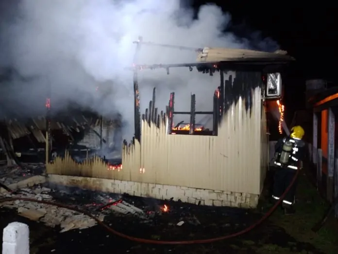 Uma residência de madeira, de 55 metros, foi destruída pelas chamas na noite desta última quinta-feira, dia 6, em Araranguá. O Corpo de Bombeiros foi acionado e se deslocou para o bairro Polícia Rodoviária, confirmando a ocorrência, por volta das 20h00min. No local, o proprietário já estava fazendo o resfriamento da casa vizinha com uma mangueira de jardim. Não houve vítimas.
