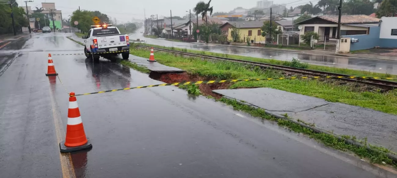 As fortes chuvas que atingiram o estado deixaram danos expressivos no Sul de Santa Catarina. Em Içara, uma cratera de quase dois metros de profundidade abriu na Avenida Procópio Lima. O município, na quinta-feira (12), registrou vários pontos de alagamentos.