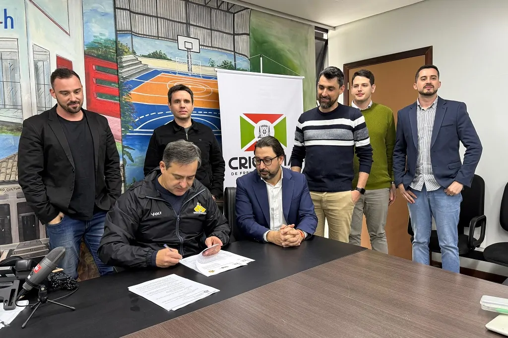O Governo de Criciúma deu mais um passo rumo à modernização da cidade com a assinatura de um termo de cooperação técnica com o Instituto de Planejamento e Gestão de Cidades (IPGC), no âmbito do Programa Brasil Inteligente. Com isso, Criciúma se torna uma das dez primeiras cidades do Brasil contempladas pela iniciativa. O acordo, firmado nesta sexta-feira (27), tem como objetivo estruturar projetos nas áreas de sustentabilidade, energia solar, iluminação pública, telecomunicações e demais serviços urbanos essenciais, por meio de Parcerias Público-Privadas (PPPs), sem gerar despesas diretas para o município.