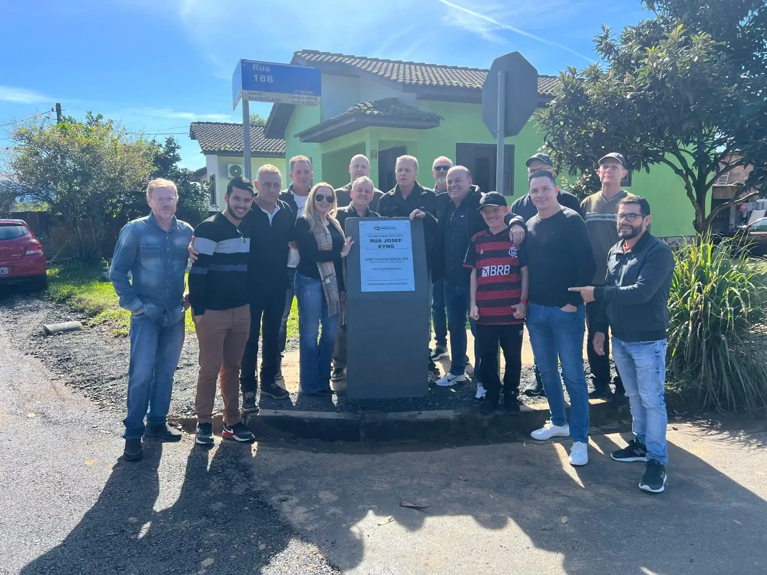 No último sábado, dia 25, o Governo de Forquilhinha inaugurou a pavimentação asfáltica de 1,25 km de extensão da Rua Josef Eyng, no bairro Santa Clara, próxima ao Frigorífico Genebra, apenas como referência. Os familiares do homenageado, Josef Eyng, se fizeram presentes no ato.