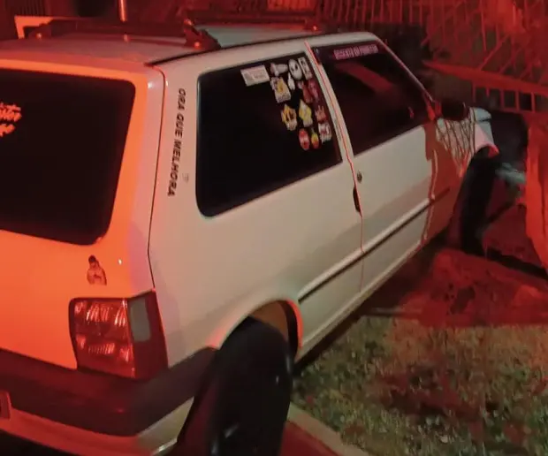 Quando o policial foi verificar se tinha colidido, o motorista do Fiat Uno tentou atropelar o militar e fugiu da abordagem. A PM iniciou um acompanhamento, que terminou no bairro Fábio Silva, quando na Rua Vereador Acácio Alfredo Vilain, o motorista abandonou o veículo em movimento. O carro colidiu contra o muro de uma residência e o condutor fugiu a pé.