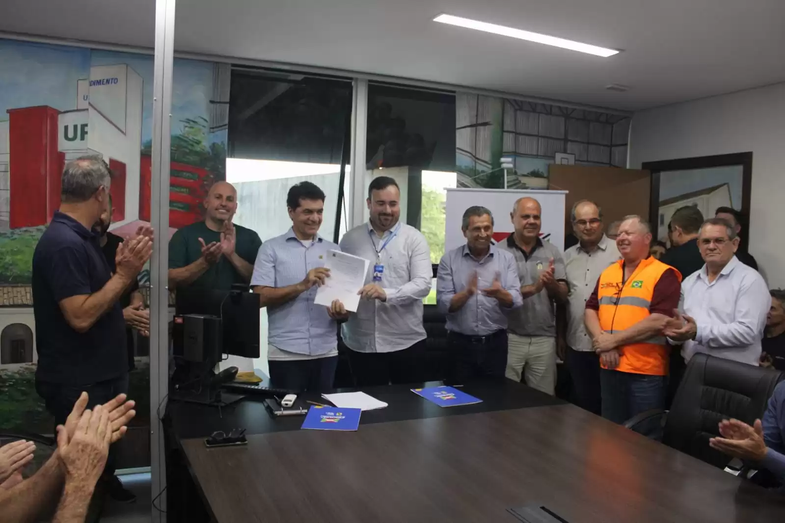 As melhorias viabilizadas pela Administração Municipal seguem em ritmo acelerado em Criciúma. Na última sexta-feira (24), em solenidade realizada na Sala de Atos, no Paço Municipal Marcos Rovaris, o prefeito Clésio Salvaro assinou as ordens de serviço que autorizam o início da construção do novo Centro Comunitário do bairro São Defende e a ampliação da Escola Municipal de Educação Básica Polo de Surdos (EMEPS) Profª. Maria de Lourdes Carneiro, além da revitalização de vias municipais, em parceria com a Companhia Catarinense de Águas e Saneamento (Casan).