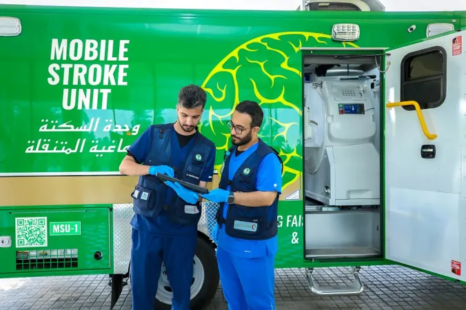 O King Faisal Specialist Hospital & Research Centre (KFSHRC) apresentou a primeira Unidade Móvel de Ambulância dedicada ao tratamento de Acidente Vascular Cerebral (AVC) na região do Oriente Médio e Norte da África. Essa nova unidade traz tecnologia médica de ponta, permitindo que os profissionais de saúde ofereçam atendimento imediato aos pacientes durante o transporte, o que pode aumentar consideravelmente as chances de recuperação. Com o objetivo de otimizar os resultados no tratamento de AVC, a unidade móvel é ativada assim que a Autoridade da Cruz Vermelha Saudita recebe notificações sobre sintomas relacionados, como fraqueza em um dos braços, assimetria facial ou dificuldades na fala. A equipe que atua na ambulância é composta por um neurologista vascular, um enfermeiro especializado em cuidados críticos, um paramédico e um técnico em tomografia, que realizam diagnósticos e intervenções no local.