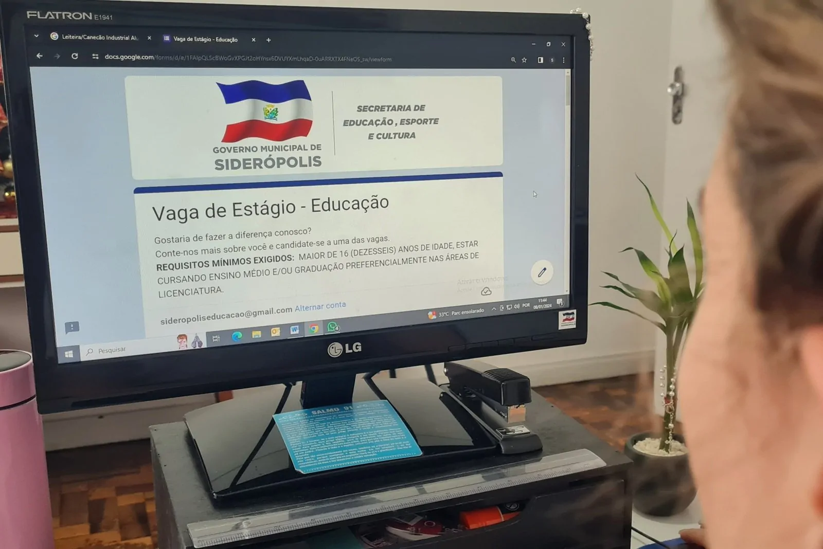A Secretaria de Educação do Município de Siderópolis está com inscrições abertas para seleção de estagiários para atuarem como bolsistas em uma das nove escolas da rede municipal de ensino. Os requisitos exigidos são ter mais de 16 anos, estar cursando o ensino médio ou a graduação, de preferência nas áreas de licenciatura.