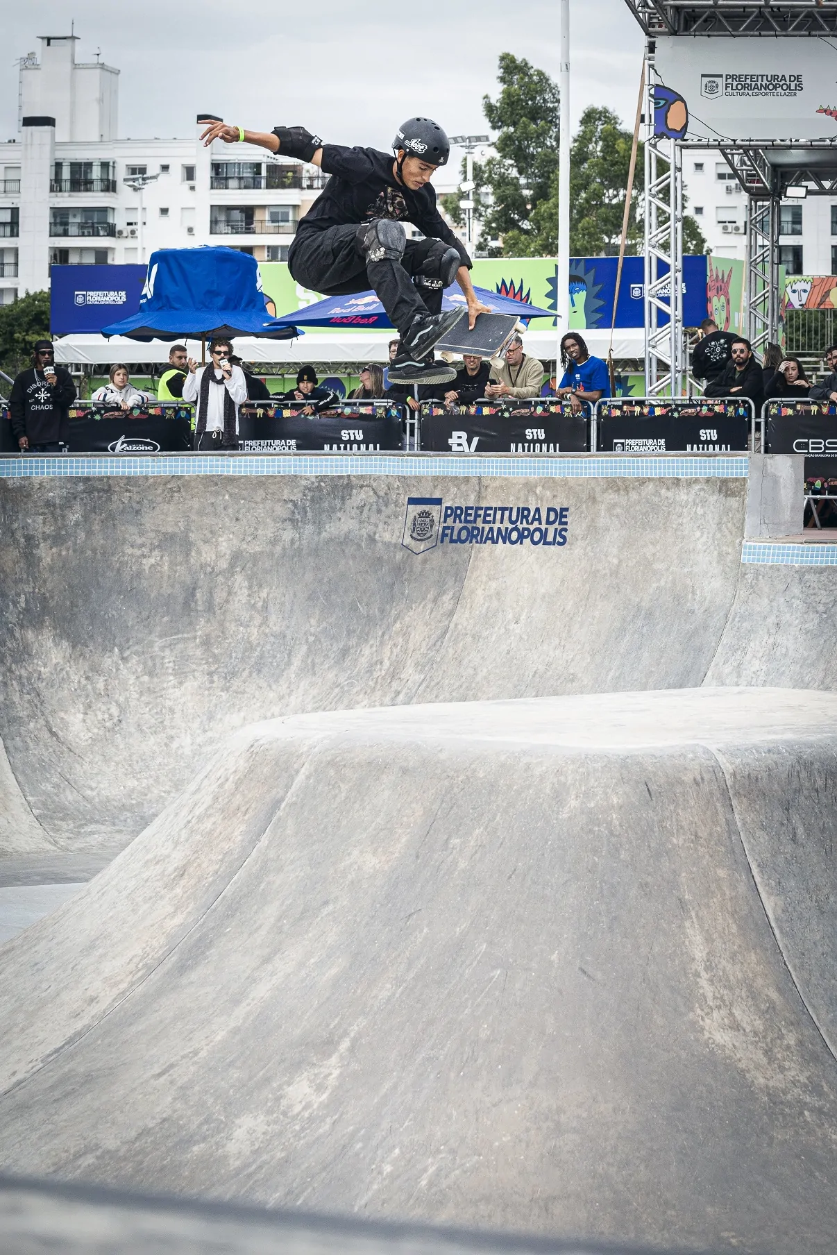 Já no primeiro dia da modalidade Street, destaque para Gabryel Aguilar. Se ele não pôde estar presente na etapa de Florianópolis no ano passado, por cumprir compromisso com um de seus patrocinadores nos Estados Unidos na mesma data, por pouco não ficou fora novamente este ano. Mas conseguiu se programar e, desta vez, retornou mais cedo do exterior, vindo agora de Barcelona, na Espanha. Com o vice na etapa de abertura, em Criciúma, ele começa bem no ranking do STU National 2025.