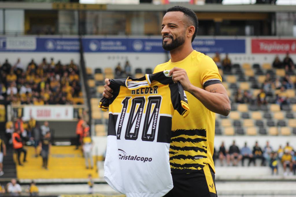 Após receber a placa, Helder exibiu a camisa comemorativa aos torcedores e falou do momento especial no Tigre. “É uma alegria enorme para mim e meus familiares ter alcançado 100 jogos por um clube com tamanha tradição no futebol. Eu sou muito feliz aqui no Criciúma, pois todos me abraçaram desde que cheguei. Espero continuar vencendo e fazendo história no Heriberto Hülse”, exaltou o lateral-esquerdo.