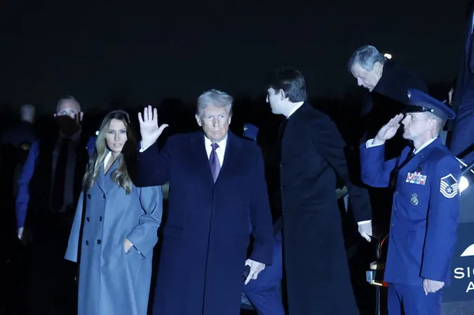 O presidente eleito dos EUA, Donald Trump, chegou a Washington na noite deste sábado (18), acompanhado da esposa Melania Trump e do filho Barron Trump. Eles viajaram a bordo de um avião da Força Aérea, enviado pelo atual presidente, Joe Biden, partindo de Palm Beach, Flórida. Após deixar o Aeroporto Internacional de Dulles, Trump dirigiu-se para seu clube de golfe em Sterling, Virgínia, para participar de uma recepção com shows e fogos de artifício para cerca de 500 convidados.