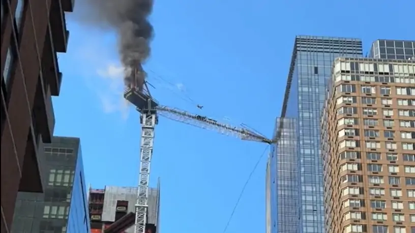 A polícia confirmou a informação e pediu para que as pessoas evitem a área. Vídeos publicados nas redes sociais mostram que o guindaste estava em chamas antes do braço superior colapsar. O canteiro de obras estava vazio, informou o Corpo de Bombeiros.